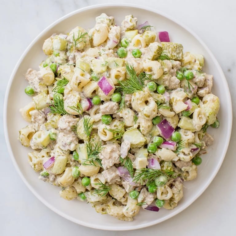 Pin It Creamy Dill Pickle Pasta Salad is a vibrant and tangy side dish that brings a refreshing twist to the traditional picnic pasta salad. This American classic features tender ditalini pasta, crisp dill pickles, and sweet peas, all brought together by a zesty, creamy dressing that is perfect for spring gatherings and backyard potlucks.