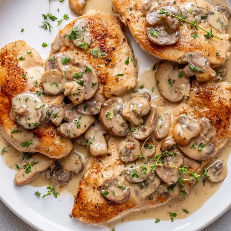 Pin It I used to think pan-seared chicken was boring until a neighbor showed me how a hot skillet and a little patience could create a golden crust that rivals any restaurant. The mushroom sauce came later, born from a near-empty fridge and a craving for something creamy. Now it's the dish I turn to when I want to feel like I'm treating myself without spending an hour in the kitchen. The smell of garlic and thyme simmering in cream still makes me pause and breathe it in every single time.
